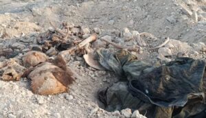 چاکەت و پانتۆڵی رەش و مۆبایلیش دەرکەوتووە تێیدا، ئەو گۆڕە بە کۆمەڵەی کە دۆزراوەتەوە دەکەوێتە سنووری ناوچەی قەندیلی شنگال، یەکینەکانی بەرخۆدانی شنگال “یەپەشە” دەسەڵاتیان هەیە تیایدا.