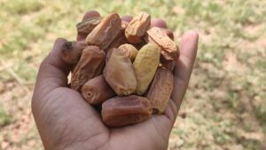 خورماکە لە جۆری مەجهولە، بەڵام کەشوهەوا و نەگونجاوی پێکهاتەی خاکەکە، رەنگ و تامی خورماکە دەگۆڕێ، ئەوان جگە لە خورما دەیان داری دیکەیان هەیە و دەیانەوێ چواردەوری مۆنۆمێنت سەوز بکەن.