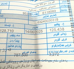ئەو ئەمڕۆ سێشەممە 2.9.2025 بە 964ی وت، بۆ یەك مانگ و لە 14.6.2025 بۆ 14.7.2025، بڕی 787,500 هەزار دینار پارەی کارەبای بۆ گەڕاوەتەوە، ئەوەندەی سۆراغی کردووە، هاوڵاتییانی دیکەش پسوڵەكانیان گەیشتووە بە هەمان نرخ و کرێی زۆریان بۆ گەڕاوەتەوە.