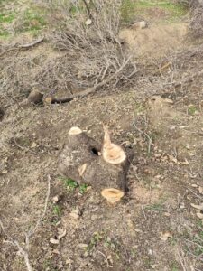 ئاسەواری بڕینەوەی دارەکان و گەشتنی مەفرەزەکە - وێنە: پۆلیسی ژینگە و دارستانی سلێمانی