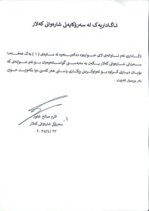 شارەوانی لەگەڵ نوسراوەکەیدا کە واژۆی ئەکرەم ساڵح، سەرۆکی شارەوانی لەسەرە، رۆژی 23.4.2025ی نوسراوەکەی دەرچوواندووە و ئەمڕۆ شەممە سەرۆکایەتییەکەی بڵاوی کردووەتەوە، لیستی ناوەکانی تیادا ئاشکرا کردووە.